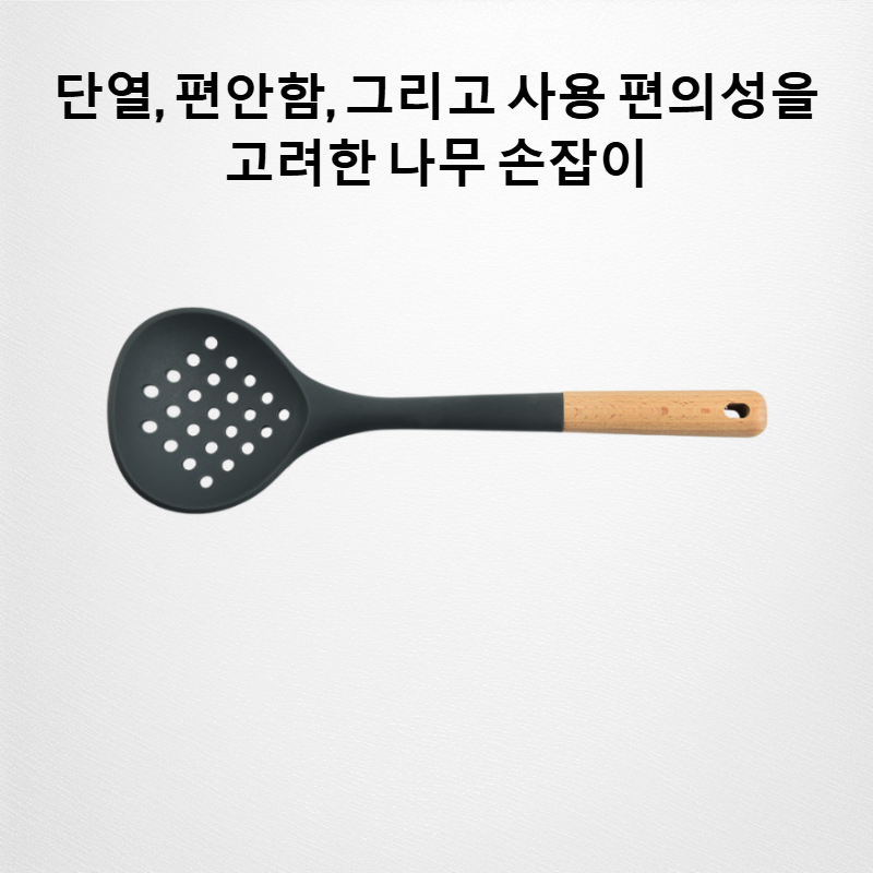 실리콘 주걱은 내열성이 뛰어나며, 나무 손잡이로 그립감이 우수합니다. 세척이 간편하고 다양한 요리에 활용할 수 있습니다.