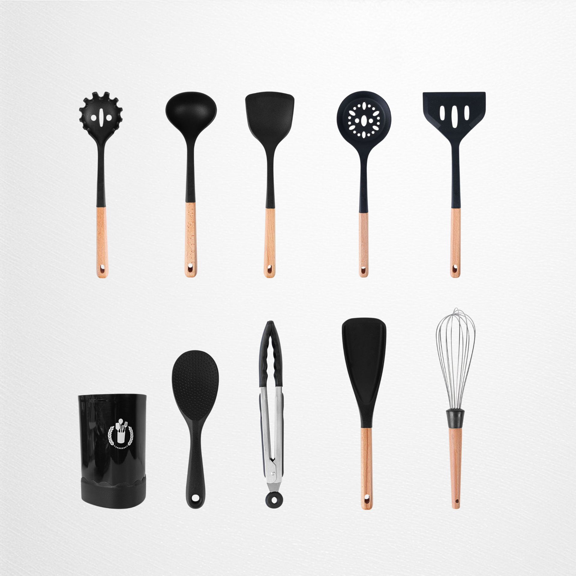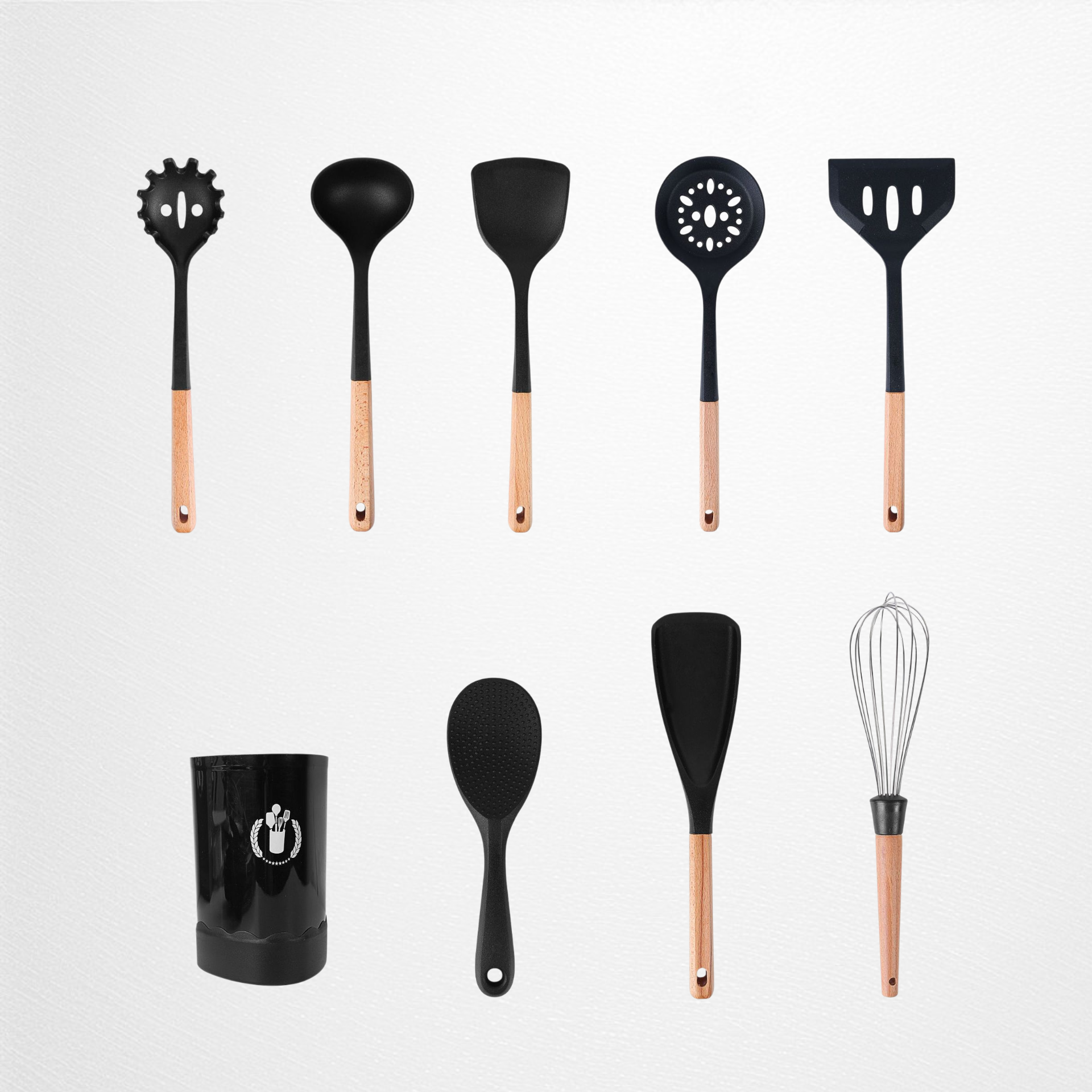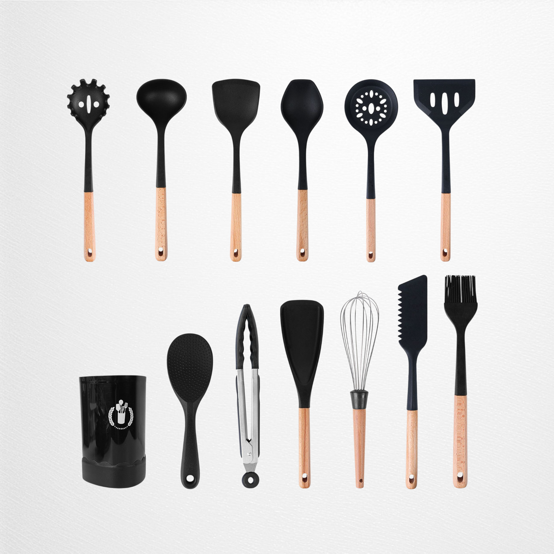 색상: 실리콘 조리도구 13종 세트, 실리콘 조리도구 10종 세트, 실리콘 조리도구 9종 세트, 실리콘 조리도구 8종 세트, 거품기, 대형 국자, 밥주걱, 포크, 주걱, 뒤집개, 구멍 뒤집개, 미니 거품기, 샐러드 스푼, 집게, 브러시, 국자, 실리콘 조리도구 12종 세트